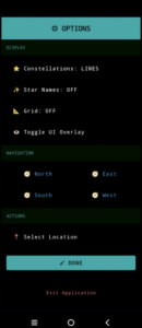 • 실시간 별자리 정보: 현재 위치와 시간에 따라 보이는 별자리, 행성, 위성 정보를 실시간으로 제공합니다.