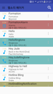 - 음악 파일 (MP3, WAV, AAC 등)에서 원하는 구간을 잘라 벨소리로 만들 수 있습니다.